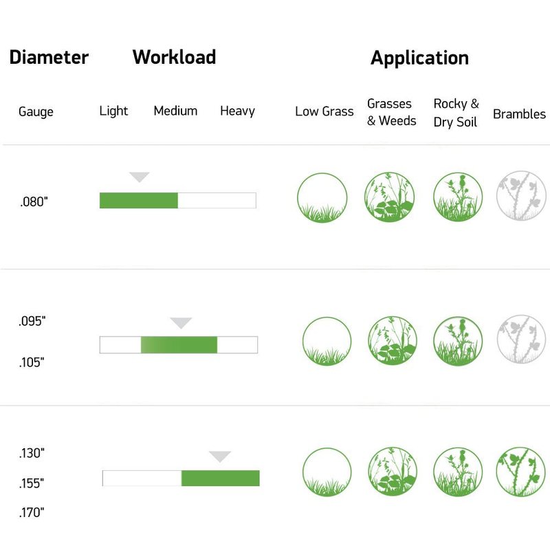 - .095" diameter trimmer line is a good size for cutting heavier weeds in your lawn or performing light commercial work