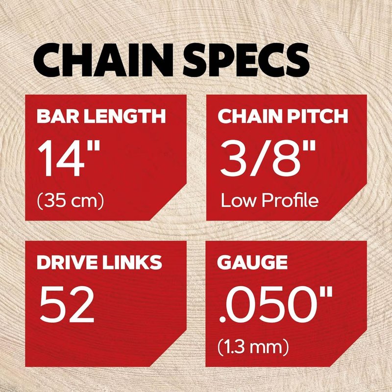 - 3x pack of chainsaw chains: 14" chainsaw chain multi pack of 3, for all chainsaw brands up to 42 cc with 3/8" Low Profile pitch, .050" (1.3 mm) gauge, 52 drive link chain