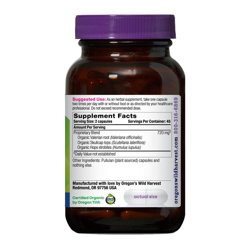 - Certified organic Valerian, Skullcap and Hops, freshly blended and lovingly prepared in the Northwest for optimum potency
