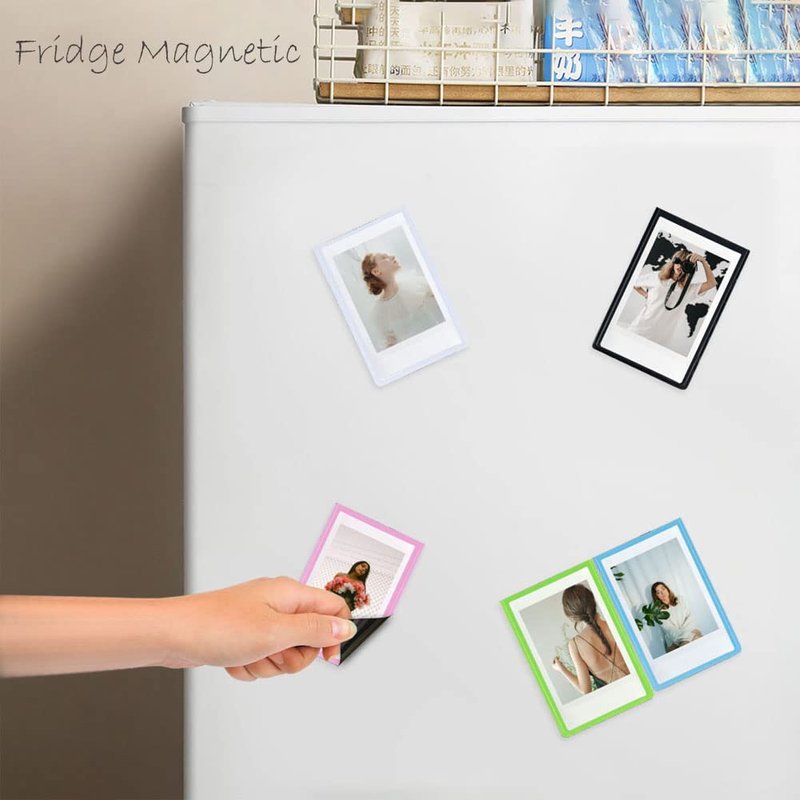 - Versatile -this magnetic frame is 3.6"*2.5" in size, it's perfect for displaying Fujifilm Instax Mini Instant Film 8.6cm*5.4cm (or 3.39"*2.13") pictures, it can be used in office to mark with notes in it while organizing your stuff.