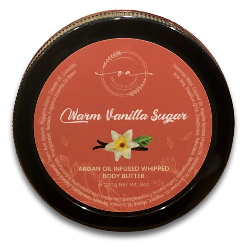 Organic Alchemy Whipped Argan Oil Body Butter for Dry Skin, Anti-Aging Body Cream Made for Women - Natural Skin Care, 8 OZ (Warm Vanilla Sugar)