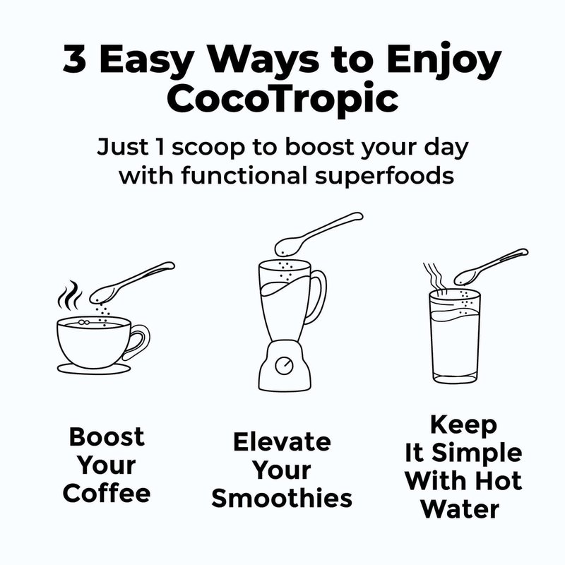 - Delicious Taste: CocoTropic mushroom hot cacao mix with reishi has a delicious natural cocoa flavor and is ideal for mornings and adds a delightful boost to baking. Simply mix one scoop of mushroom hot chocolate for a tasty boost.