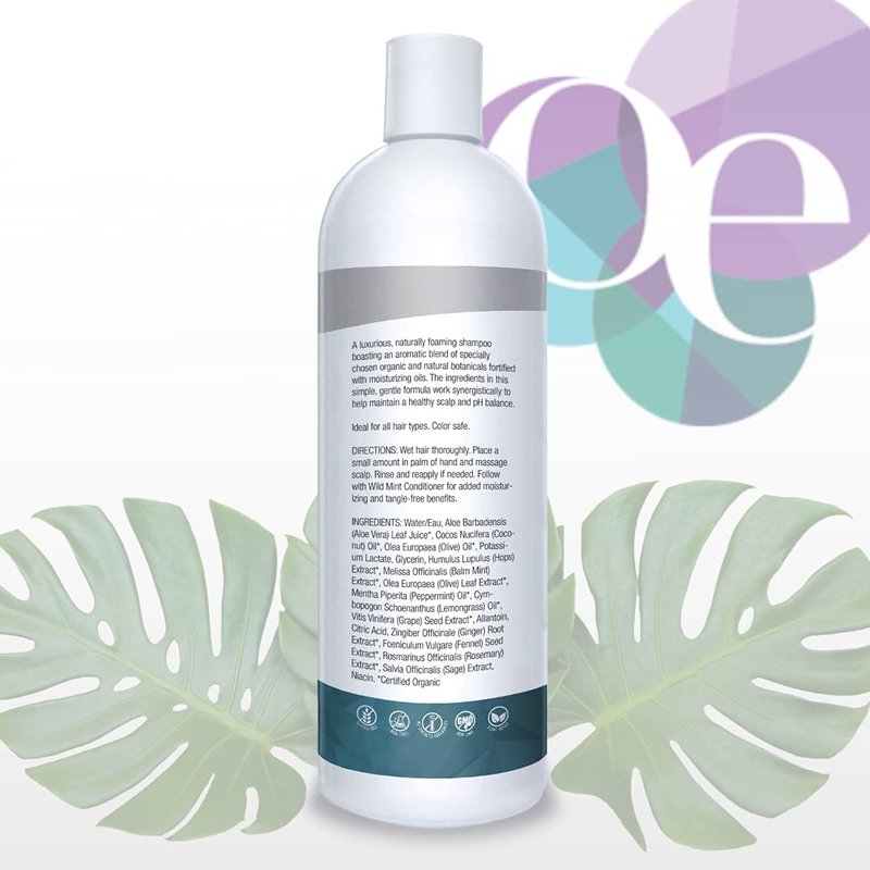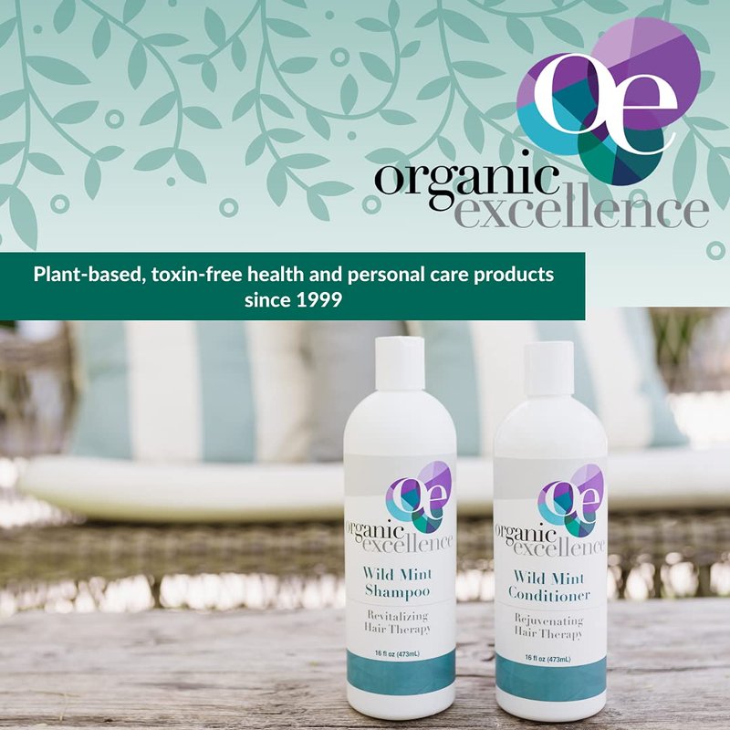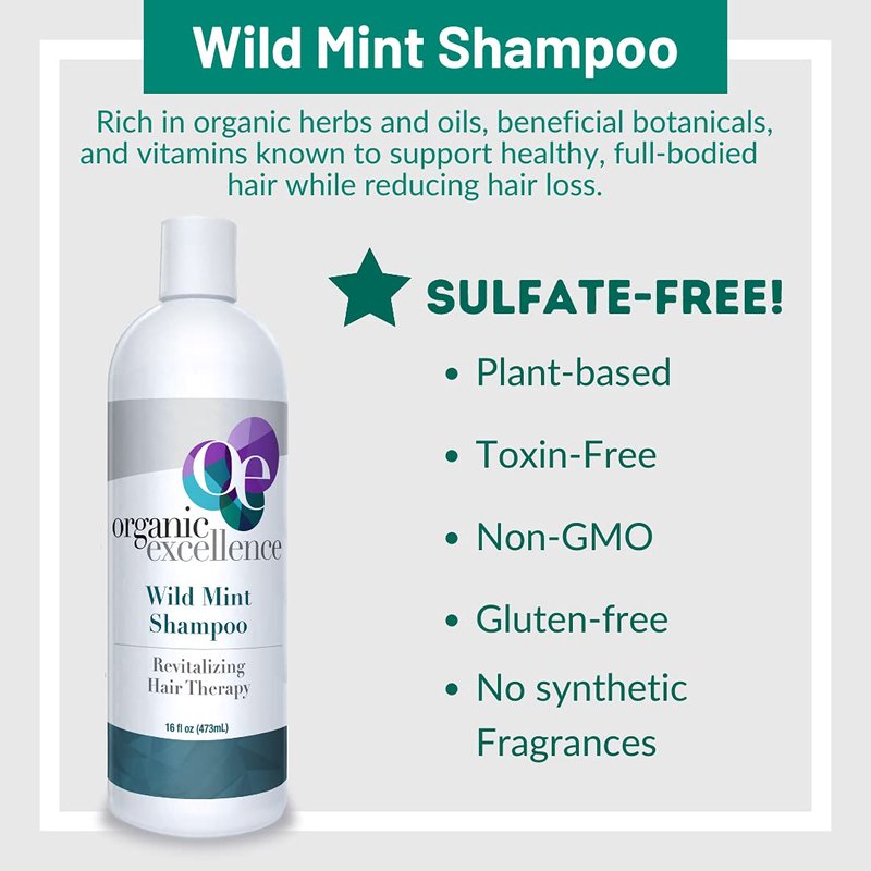 Organic Excellence Natural Organic Shampoo, Wild Mint & Rosemary, Chemical Free, Plant-Based, Toxin-Free, Cruelty-Free, Certified Herbs & Oils For Healthy Full-Bodied Hair 16 fl. oz
