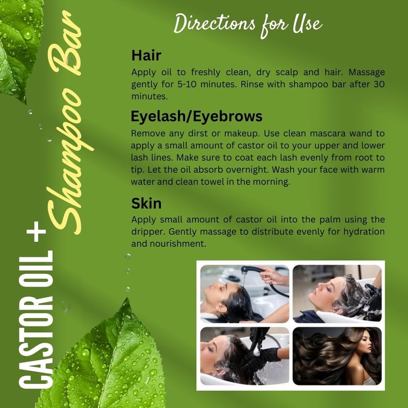 - ๐ฟ Our castor oil + shampoo bar duo harnesses the power of 100% natural Ricinus Communis luscious locks. Promotes fuller and thicker hair growth.