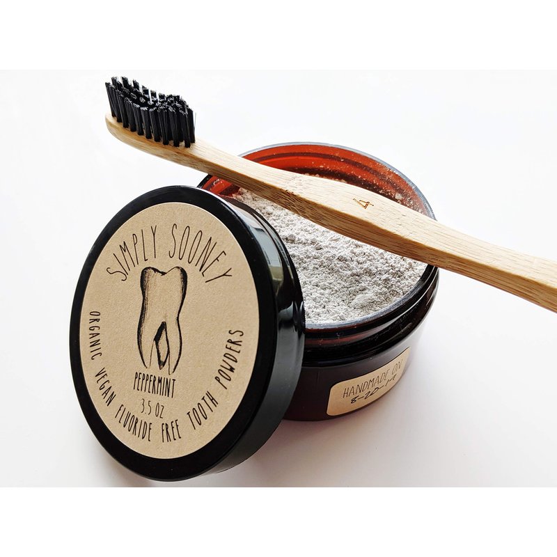 ORGANIC VEGAN FLUORIDE FREE REMINERALIZING TOOTH POWDER PRODUCT OVERVIEW Handcrafted vegan tooth powders made in ultra-small batches. Enough for only 16 jars is made at a time. All powders and ingredients are stored in glass containers until your purchase. BPA free amber plastic jar, optional paper packaging by special request. Gentle Cleansing, non-abrasive, non-toxic, safe when swallowed Made using Certified Organic ingredients sourced from American companies. Woman Owned Company in business since 2013. Over 1400 positive reviews on eBay and countless more on Etsy Unlike other companies, you get more powder for your money! No overhead markups! 100 gram jar will last you nearly 6 months! DIRECTIONS FOR USE Wet your toothbrush Dip the brush in the powder Brush your teeth as you normally would Rinse your mouth well Rinse your toothbrush and sink Enjoy the fresh clean feeling for twelve hours and beyond! INGREDIENTS YOU TRUST 100% Pure Wyoming Sodium Bentonite Clay Food Grade Pure Calcium Carbonate from Limestone, not eggshells Non-GMO American Birch Xylitol Non-GMO Magnesium Citrate Pure Himalayan Sea Salt Certified Organic Pure Peppermint Essential Oil Certified Organic Pure Spearmint Essential Oil