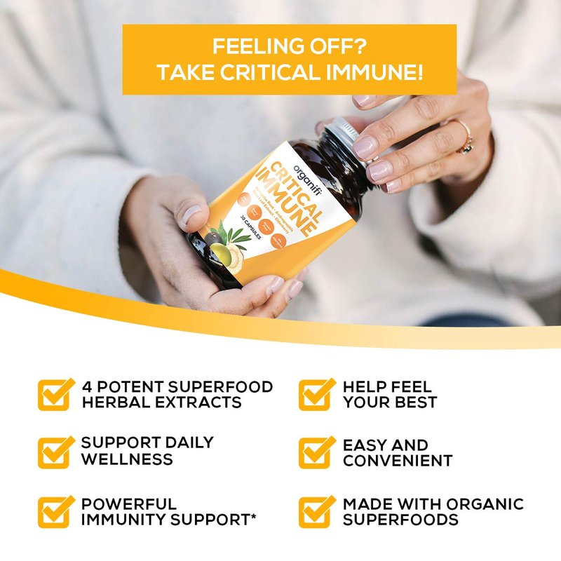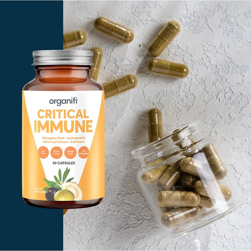 Organifi: Critical Immune - Superfood Immune Support Blend - 30 Capsules - Powerful Blend of Elderberry, Andrographis, Astragalus and Olive Leaf Extract - Rich in Vitamin C and Antioxidants
