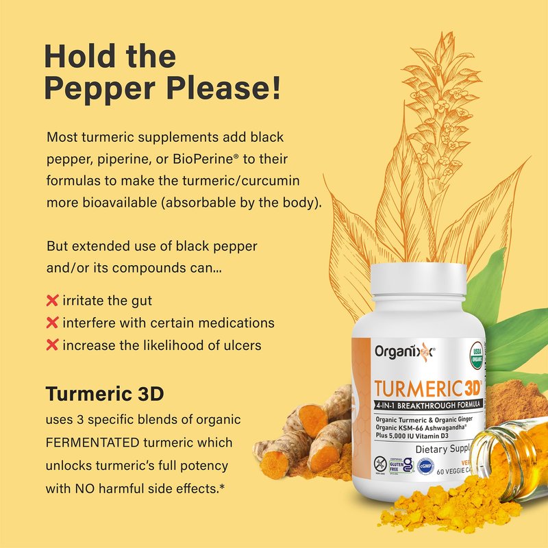 Organixx Turmeric Curcumin, Natural Immune Support, Helps Maintain Healthy Joints, with Ginger, Ashwagandha, Vitamin D, Fermented for Maximum Bioavailability, 60 Vegetarian Capsules