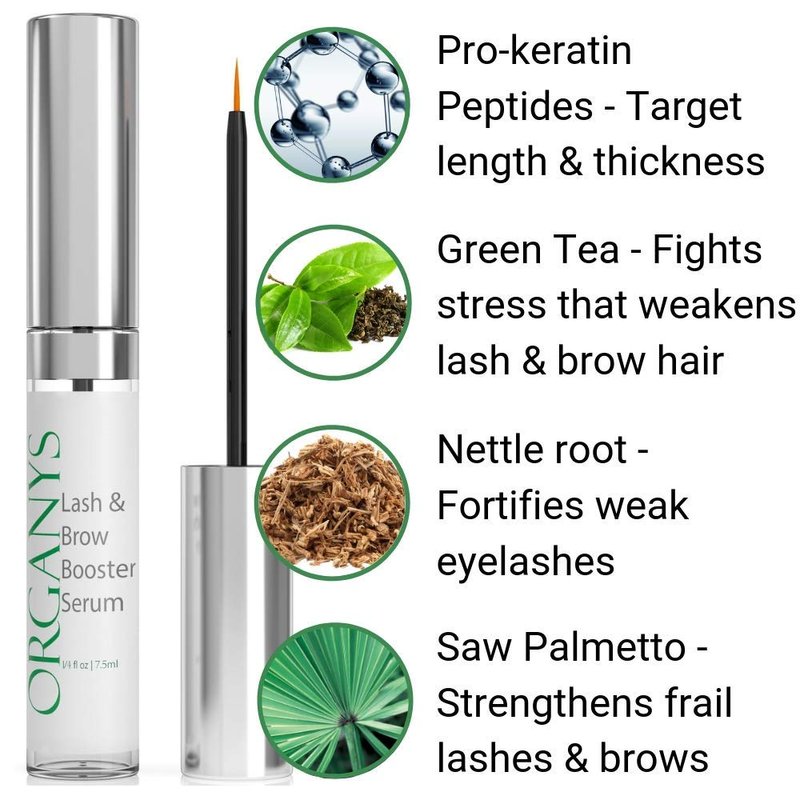 - Our top rated product has 2 pro-keratin peptides for lash & brow enhancement. Keratin is the main building block of eyelashes & eyebrows. The Lash & Brow Booster Serum also has 3 botanicals - green tea, saw palmetto and nettle root - that support weak and frail lash & brow hair. Together, these ingredients boost the appearance of longer, fuller lashes & brows