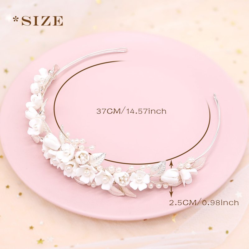 - ๐๐ก๐๐ซ๐ฆ๐ข๐ง๐ ๐๐๐ซ๐๐ฆ๐ข๐ ๐ ๐ฅ๐จ๐ฐ๐๐ซ, ๐๐ฅ๐๐ฌ๐ฌ๐ข๐ ๐๐๐๐ซ๐ฅ ๐๐ฆ๐๐๐ฅ๐ฅ๐ข๐ฌ๐ก๐ฆ๐๐ง๐ญ๐ฌ๏ผThis bridal headpiece features a beautiful array of handcrafted ceramic flowers,The pure white of the ceramic lends a classic, timeless look to your bridal attire.These pearls provide a traditional bridal aesthetic, perfect for adding a romantic and sophisticated touch to your wedding day hairstyle.