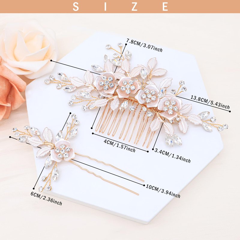 - Size: For the comb Width Approx 15cm/ 6inch Height Approx 8cm/ 3inch; For the hair pin Length Approx 10cm/ 3.5inch Width Approx 5cm/ 2inch