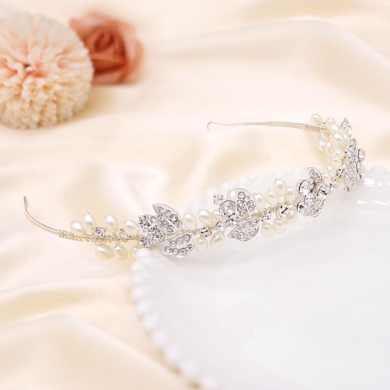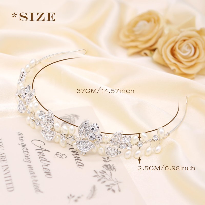 This bridal headband, with its blend of classic pearls and radiant rhinestone leaves, is the perfect finishing touch to any bridal look, ensuring that you feel as beautiful as you look on the most memorable day of your life.