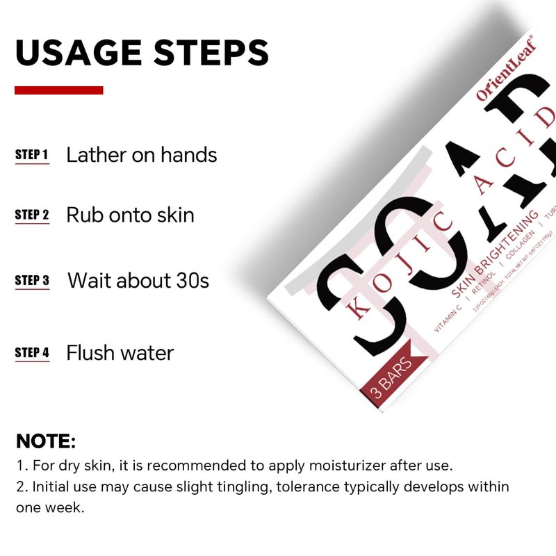 - OrientLeaf Kojic Acid Soap: Gently cleanses and refreshes your skin, helping you maintain a healthy, balanced complexion. Suitable for face and body, this soap helps support clear, trouble-free skin.
