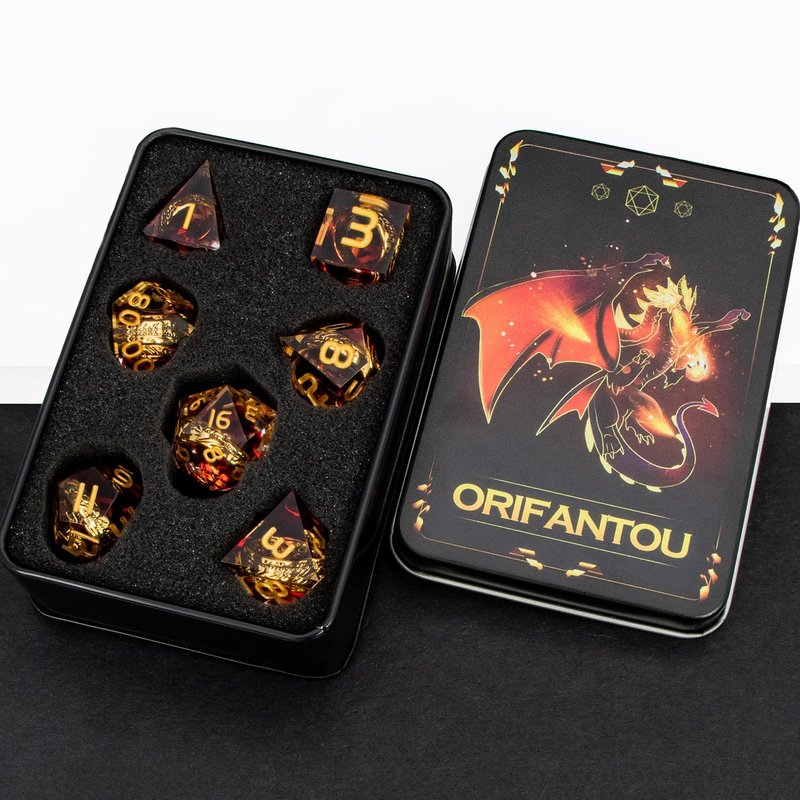 ORIFANTOU Magic Lord of The Rings DND Dice Set Sharp Edge Red Resin Dice with Box, Golden Ring Inclusion D&D Dice RPG Role Playing Games, Dungeons and Dragons D and D Polyhedral Dice Set