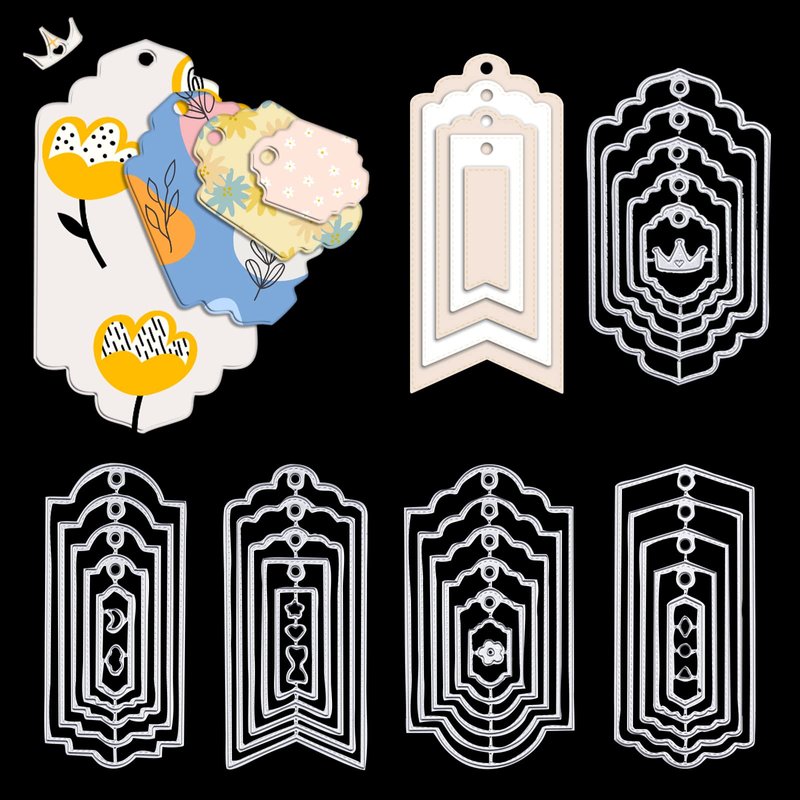 - How to Use: There are 5 pcs bookmark frames dies of different sizes per set. Please separate each bookmark frame dies before use. You will get specially matched layering tags and bookmarks in various colors and exquisite.