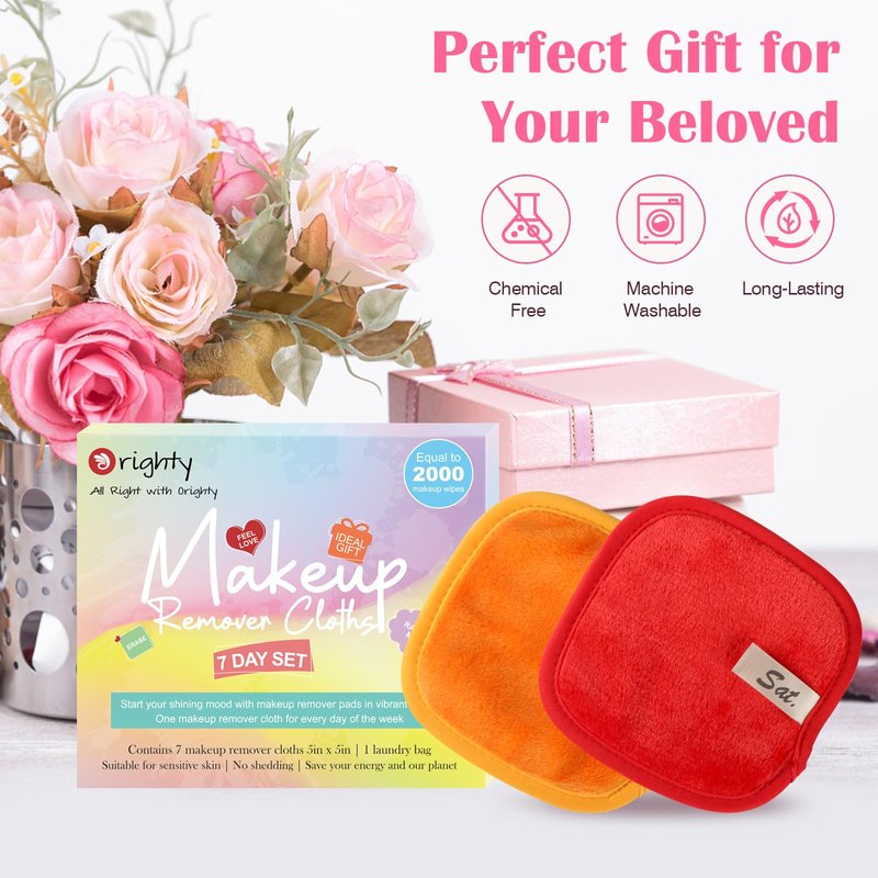 - [STAY ORGANIZED IN MAKEUP REMOVER] - Orighty makeup removing 7-day set helps create a routine and stay organized in your daily makeup removal. Each Pad sews a thoughtful ribbon, you can follow the date on the ribbon to choose one makeup remover cloth for every day of the week, which can help you develop a good habit during makeup removal.
