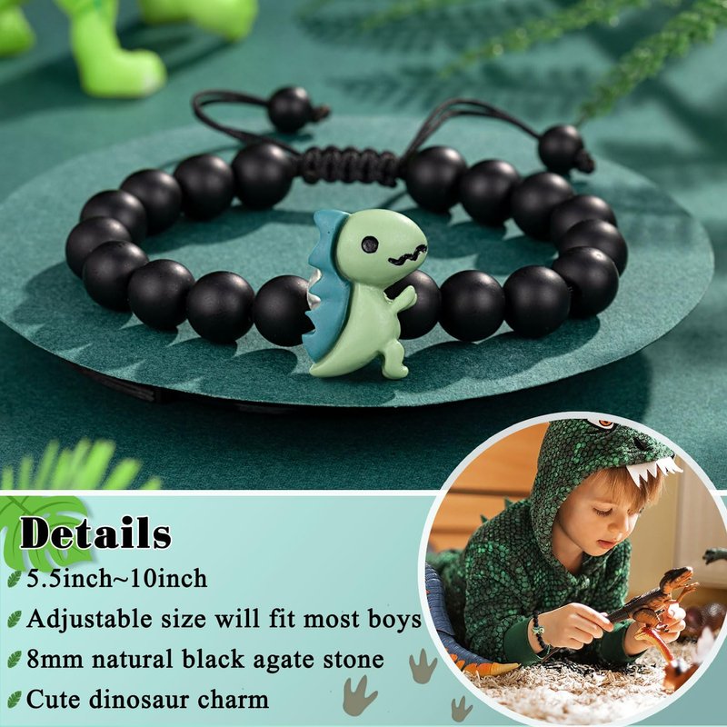 - 【Material】-- The dinosaur bracelet is made of 8mm natural stone, help to release stress and keep a good mood.