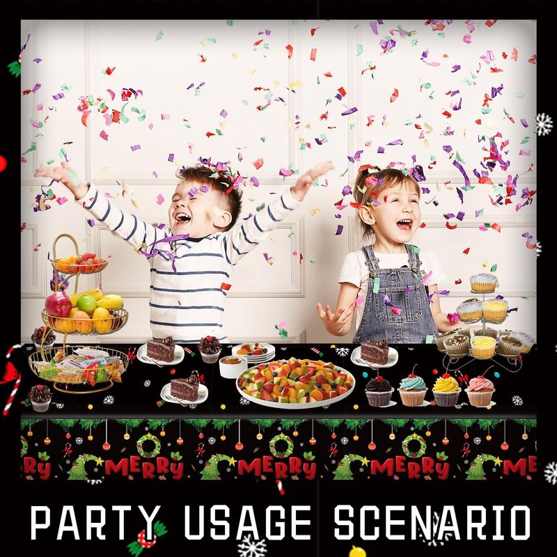 - Package Content - Each package contains 6pcs tablecloths. The 108 × 54 inch Christmas tablecloths are suitable for most tables, can be used indoors and outdoors as a decoration on the banquet table, and can also be cut into a larger size or used as a tablecloth.