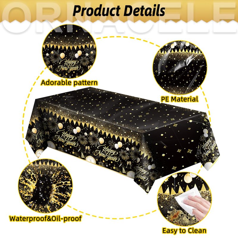 - Durable Material: Made of quality plastic,all our happy new year table covers are highly opaque and provide full coverage for your tables. No fading, no shrinkage, heavy duty, waterproof, portable,easy to clean.