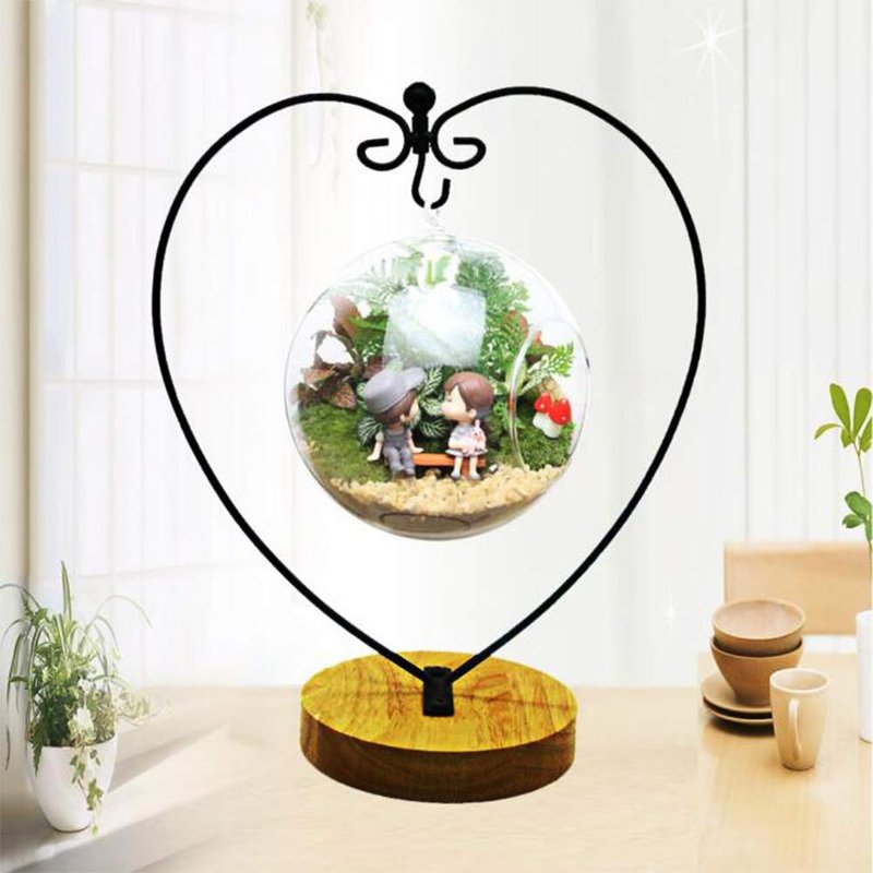 Ornament Display Stand for Hanging Glass Terrarium Wood Base Creative Decoration for Home Garden Wedding Party Festival (Heart)