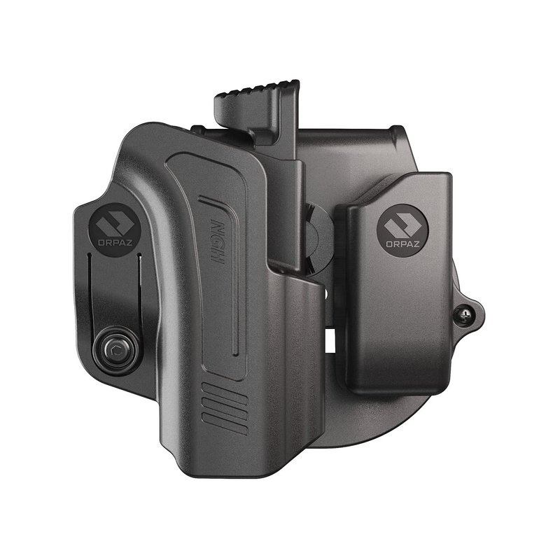 The Orpaz R-Series holster provides secure, comfortable carry in a compact and lightweight package. This minimalist design has fully adjustable retention and rotation, and enables the shooter to respond especially quickly to a threat while adding almost no surface area to the pistol.