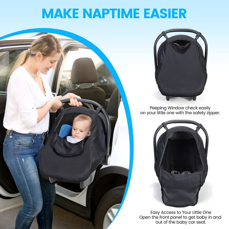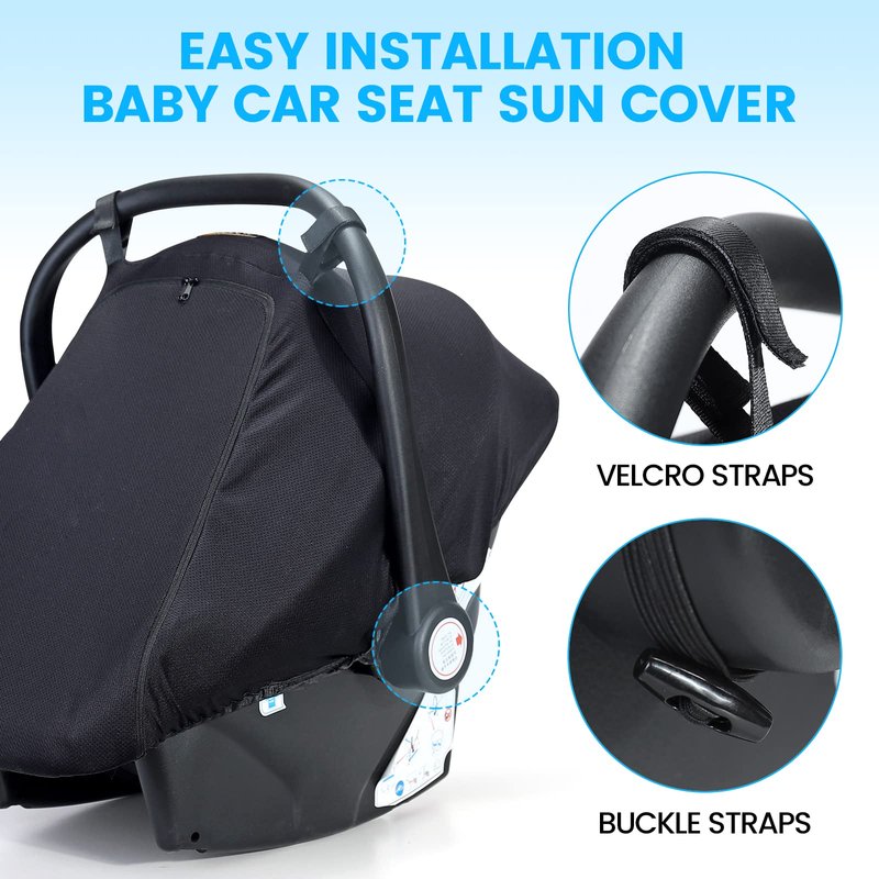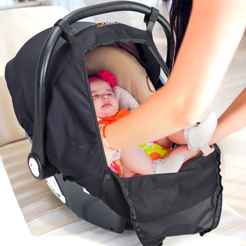 - 🏖 𝐍𝐄𝐂𝐄𝐒𝐒𝐀𝐑𝐘 𝐏𝐑𝐎𝐓𝐄𝐂𝐓𝐈𝐎𝐍: This Breathable Orzbow Car Seat Sun Shade ensures good air circulation without stuffiness and suffocation and protects babies from up to 99% of sunlight and UV (UPF50+) who should be kept out of direct sunlight completely. Besides, it can give full protection from insects, wind and bright lights, which is essential for baby car seats.