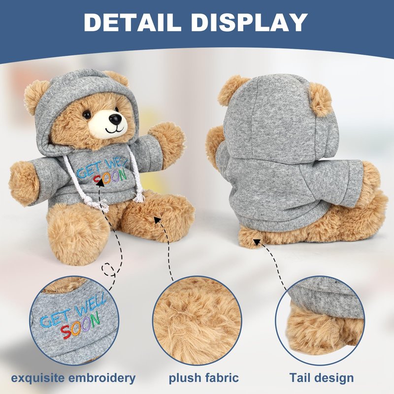 Osacoe Get Well Soon Teddy Bear Stuffed Animal with Gift Box Removable Hoodie for Comfort and Love, for Kids, Women & Men in Tough Time, Get Well Soon Gifts Basket with Beautiful Greeting Card