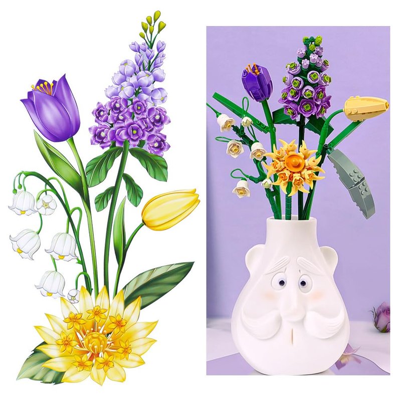 - 💐【Tulip bouquet building block set】: Tulip 6-flower set, including star celery, tulip, magnolia, violet, tulip buds, leaves + production instructions. Follow our painting manual and you will have a perfectly realistic bouquet.