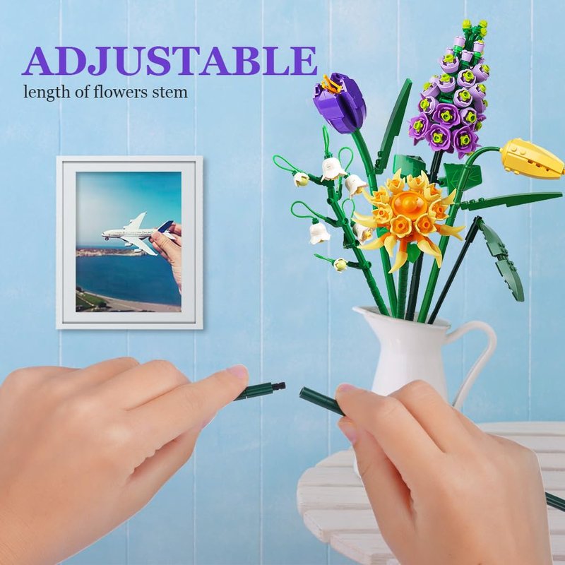 - 💐【Unique DIY Design】: Contains 534PCS creative building blocks, each bouquet of flowers has unique characteristics and meanings. You can give full play to your creativity and freely match our other bouquets to create your flower arrangement art, swingable petals and leaves, adjustable stem length, design a meaningful flower for you.