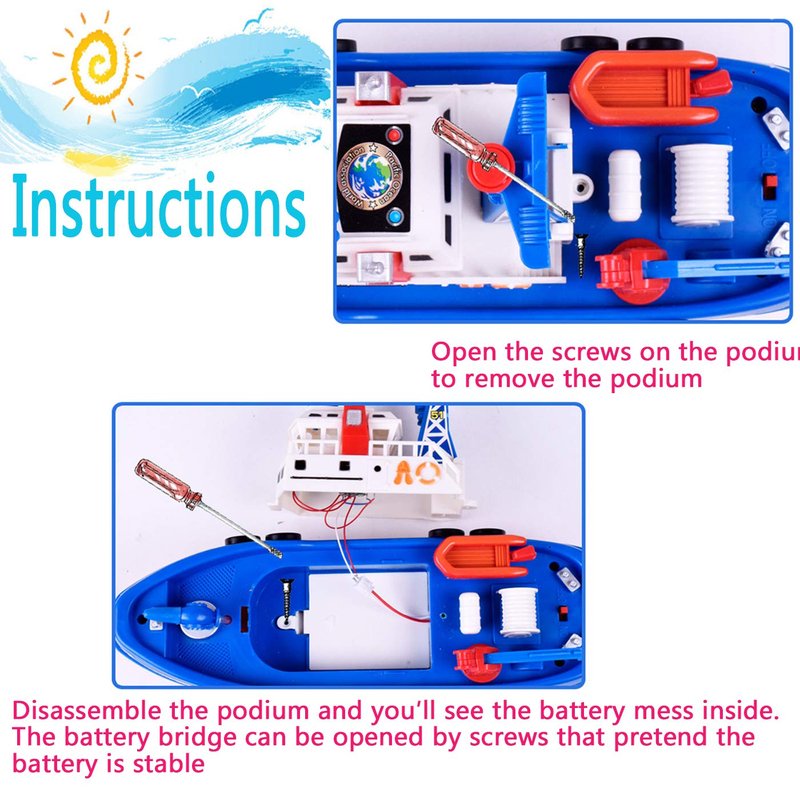 - 【TIPS】The boat can only float on the water, not sink into the water .Take the boat OUT OF water when do not use. DO NOT place it in water all the time because there are batteries inside.