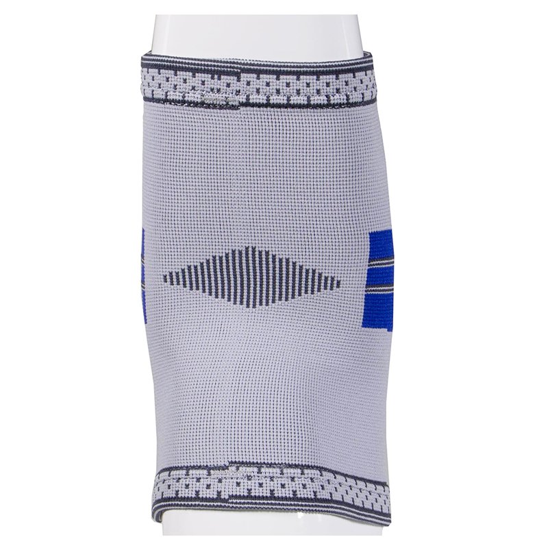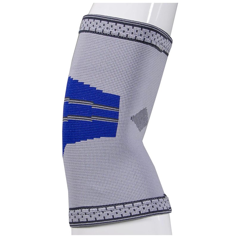 - Fits left or right elbow; Non-allergenic latex free; Features a modern silver gray with royal trim design