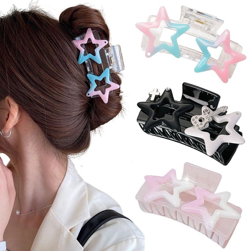 OTEEGX 3PCS Cute Y2K Hair Clips Star Plastic Claw Hair Clips for Women Kawaii Vintage Y2K Hair Accessories 2000s Fashion