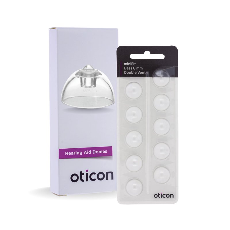 - GENUINE OEM REPLACEMENT DOME - Genuine OEM Oticon Minifit Bass Double Vent Domes 6mm, with a diameter at the base of 0.24 inches (6mm), are original equipment manufacturer accessories, ensuring safety, reliability, and optimal performance. Parts no 133791 and 133541 are included in manufacturer packaging, providing a total of 10 domes. Users are strongly advised to choose Genuine OEM Oticon Minifit Bass 6mm Double Vent Domes for their hearing aids for authenticity and the highest quality