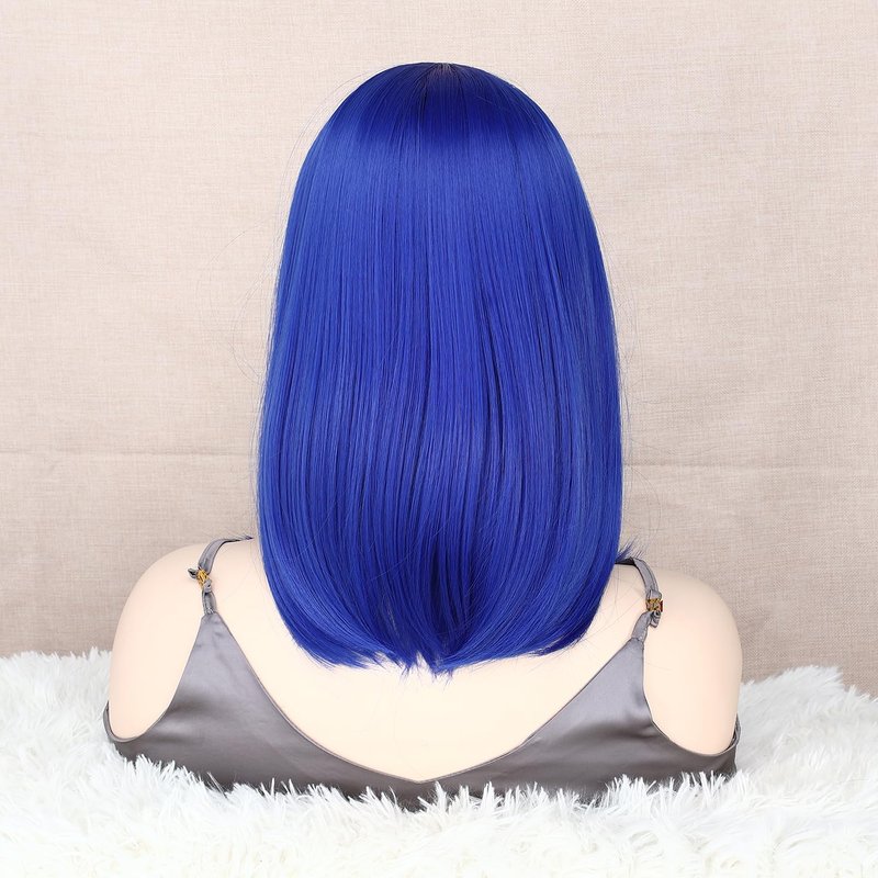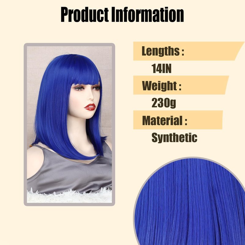 OTO BELLA 14 Inch Short Bob Wigs with Bangs, Straight Bob Wigs for Women Natural Looking, Synthetic Short Bob Wigs Heat Resistant Fiber Wigs for Daily Party Cosplay (Blue)