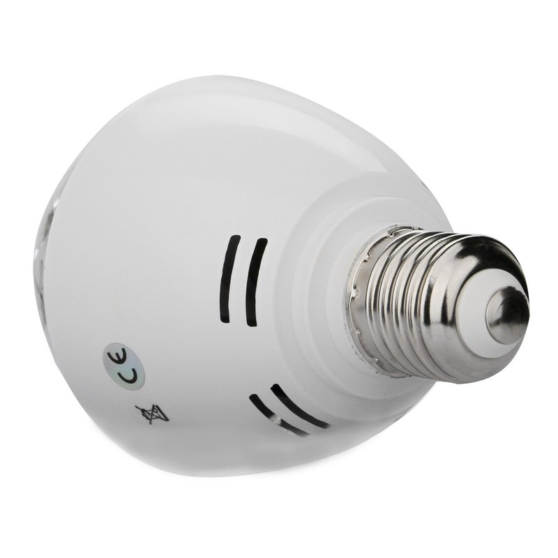 Features - RGB LED crystal ball rotating E27 stage light for indoor use - Colorful and amazing lighting effect which rotate automatically - Color selection, sound activate, brightness dimming and rotation speed can be adjusted via remote controller - Long working life - Great for use in discos, clubs, DJs, KTV, pubs, bars, banquets, weddings, family parties, etc Specifications: - Voltage: 100V-240V / 50-60Hz - Base Type: E27 - Power: 3W - LED: 3pcs RGB - Beam Angle: 180° - Remote Distance: 5m / 16.4ft - Material: Plastic - Size: 12.7*7.6*7.6cm / 5*2.9*2.9 inch Package Included: 1x LED Rotating Light 1 x Remote Control 1 x User Manual