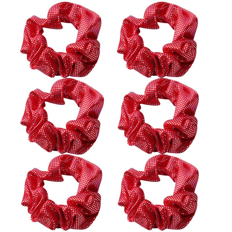 OTYOU 6 Pack Shiny Polka Dots Metallic Hair Scrunchies Rich Tones Scrunchy Bobbles Elastic Hair Ties Hair Accessories for Performance,Dance,Cheer,Party Favors (Red)