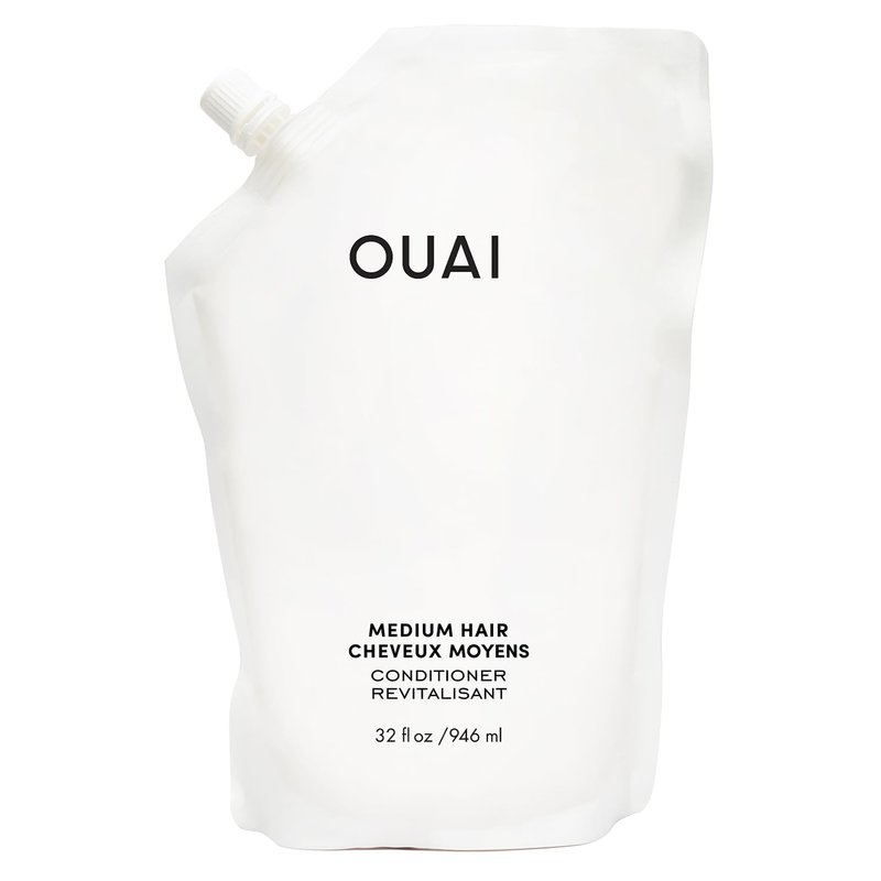 OUAI Medium Conditioner Refill - Hydrating Hair Conditioner with Coconut Oil, Babassu Oil, and Keratin - Strengthens, Repairs and Adds Shine - Paraben and Phthalate Free Hair Care Products - 32 oz