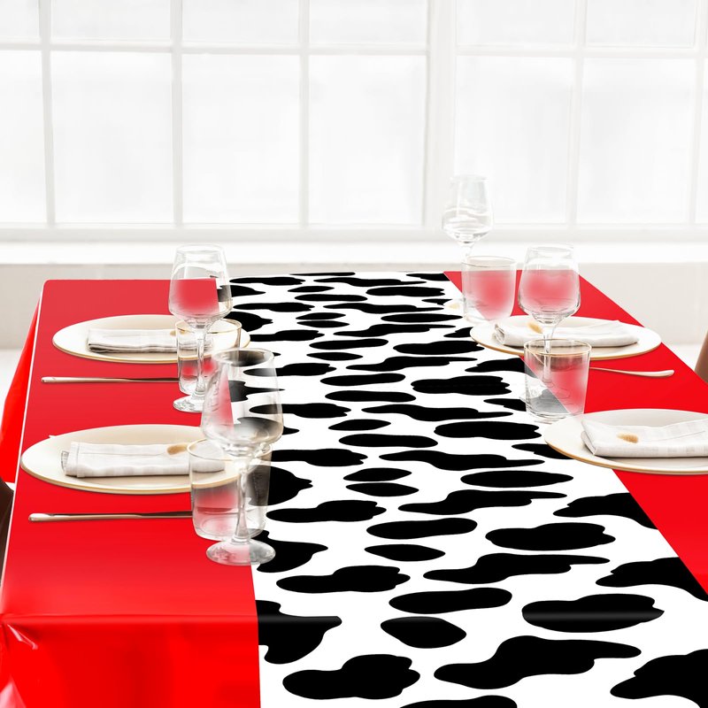 Oudain 4 Pcs 54 x 108 Inch Cow Table Cloths for Party Cow Tablecloth Paisley Table Runner Table Cover Rectangular Birthday Party Decorations Supplies for Home (Red)