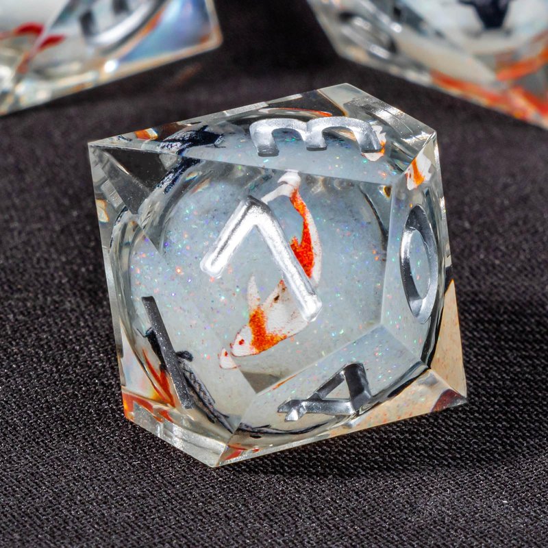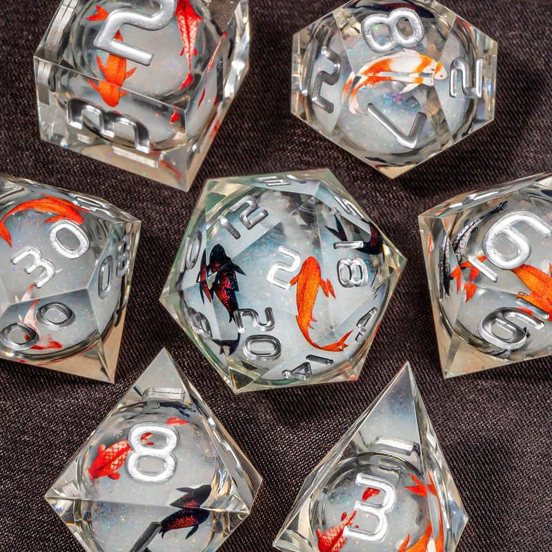 OUKELANWO Liquid Core Koi Fish DND Dice Set D&D with Box, 7Pcs Sharp Edge Resin Dungeons and Dragons Polyhedral Role Playing Gaming Dice, Ocean RPG D and D D20 D12 D10 D8 D6 D4 Dice