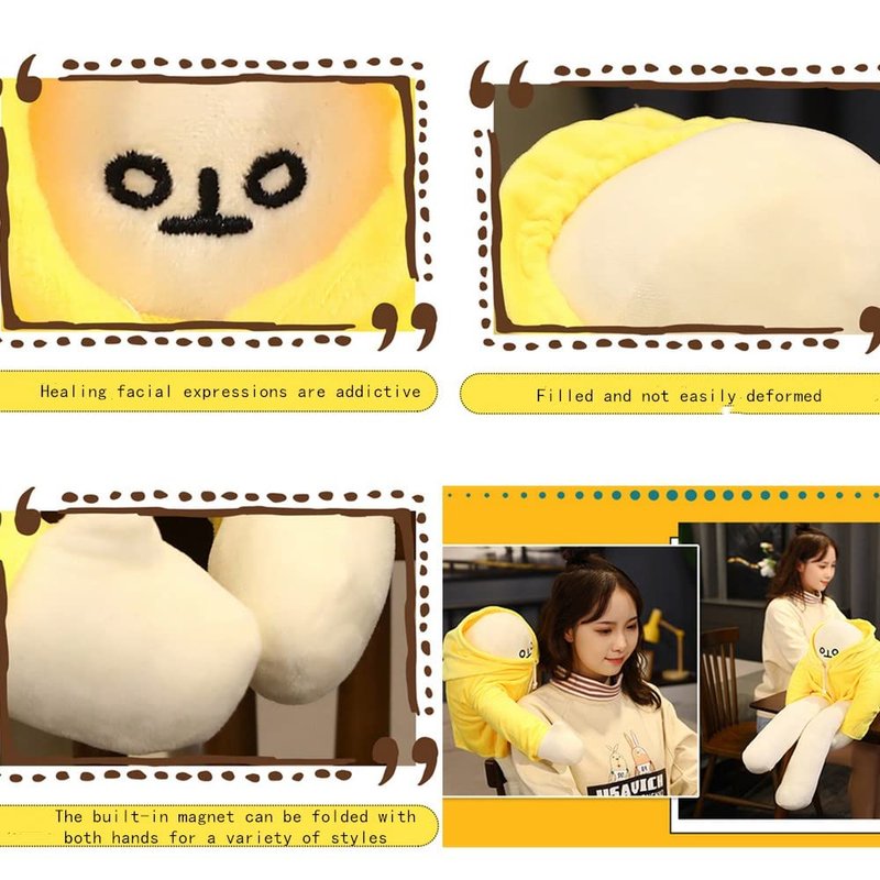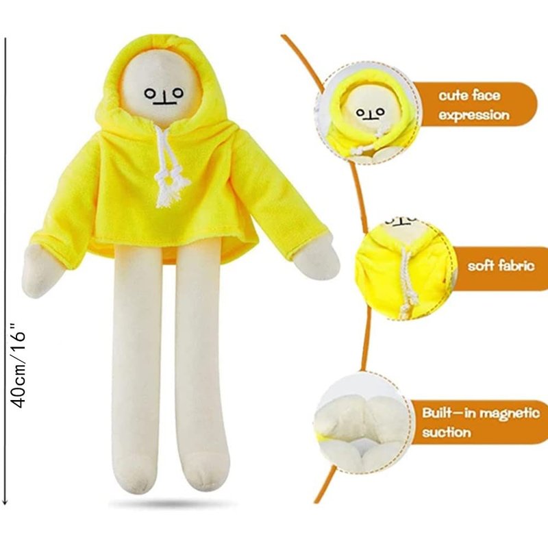- Cute design: cute banana figure doll is wearing a yellow hoodie. It is a very flexible toy. The legs and arms are embedded with metal wires. There are magnetic buttons on the palms, so you can take many poses, put it in the bedroom or living room, whether it is playing or sleeping, it is very attractive.