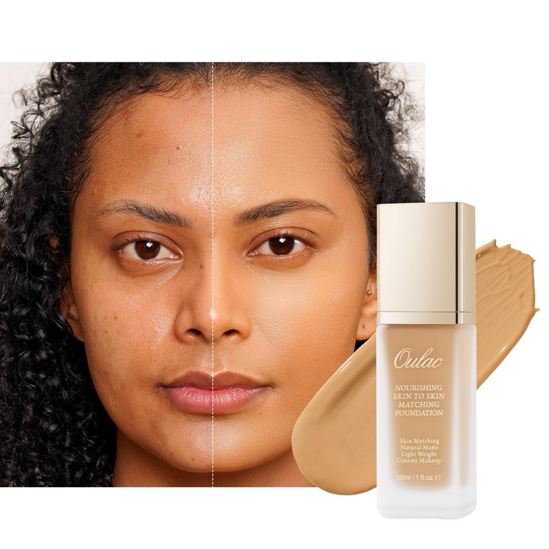 - Foundation Makeup: Oulac Matte Foundation provides medium to high coverage, effectively covering facial blemishes such as dark circles and spots, and also evens out and brightens the skin tone