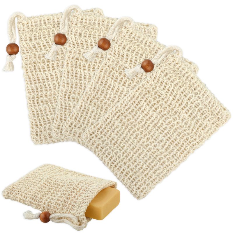 Ouligay 4pcs Soap Bags, Natural Sisal Soap Saver Bag, Exfoliating Soap Pouch, Soap Scrubber Pouch, Plastic-Free Exfoliating Foaming and Drying Soap Holder for Shower