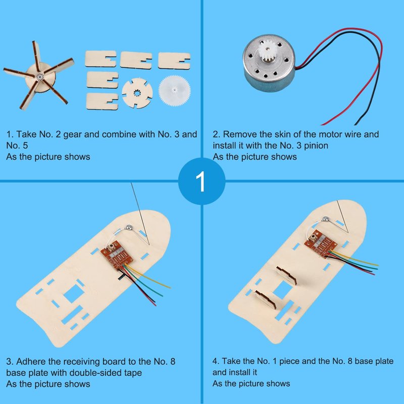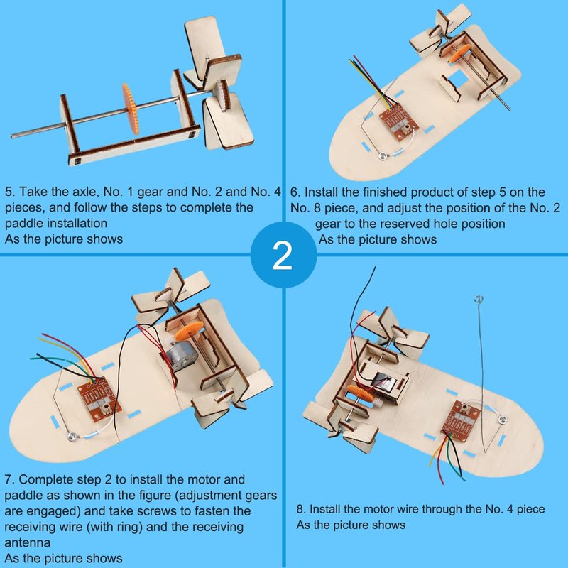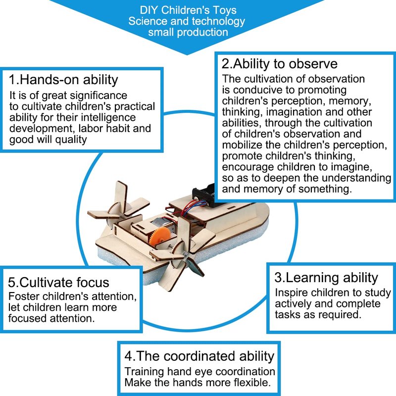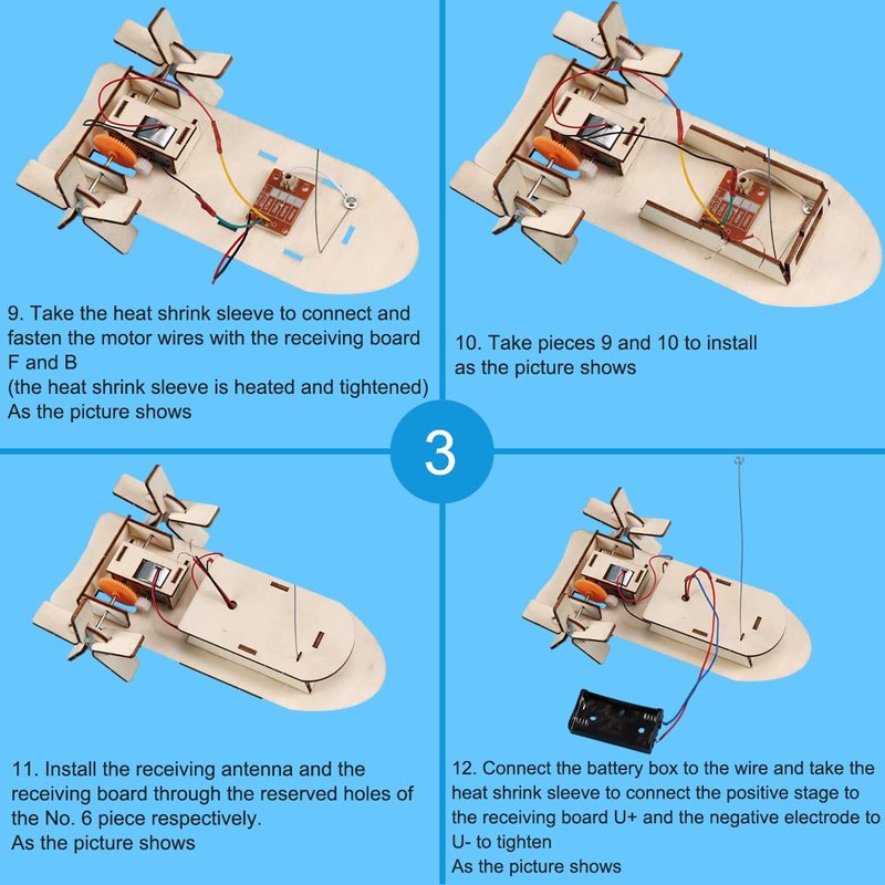 OULUN 3D Wooden Remote Control Boat, Motorized Construction Engineering Set