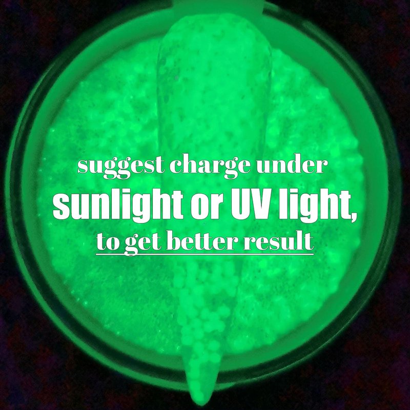 - ❤️Long Time Glow , Super Bright Glow in the dark, ❤️Charge under UV light or Sunlight for 30~90seconds, it will brightly glow in darkness ❤️Notice: if you only charge the nails under Normal House Light instead of any sunlight or UV light, then it will not glow well.
