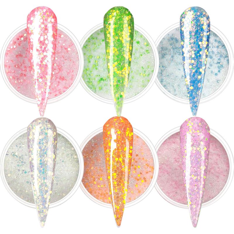 OUMISAYA Glow in the dark Glitter Nail Acrylic Powder 6 Colors Set (APG060)