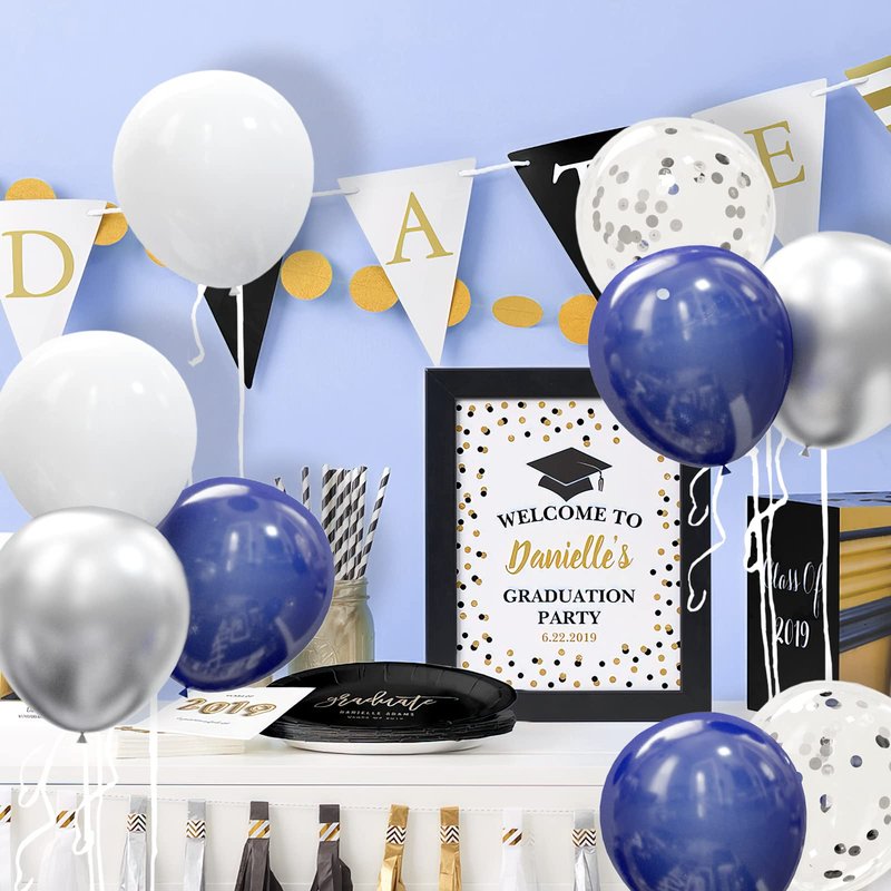 - ✔️ 【VALUABLE PACK】You will get 62pcs 12 inch latex balloons, including 20pcs navy blue balloons, 10pcs silver metallic balloons, 20pcs white balloons, 10pcs silver confetti balloons with 2pcs ribbons in white. They will add happy warm and sweet atmosphere for a variety of parties and events.
