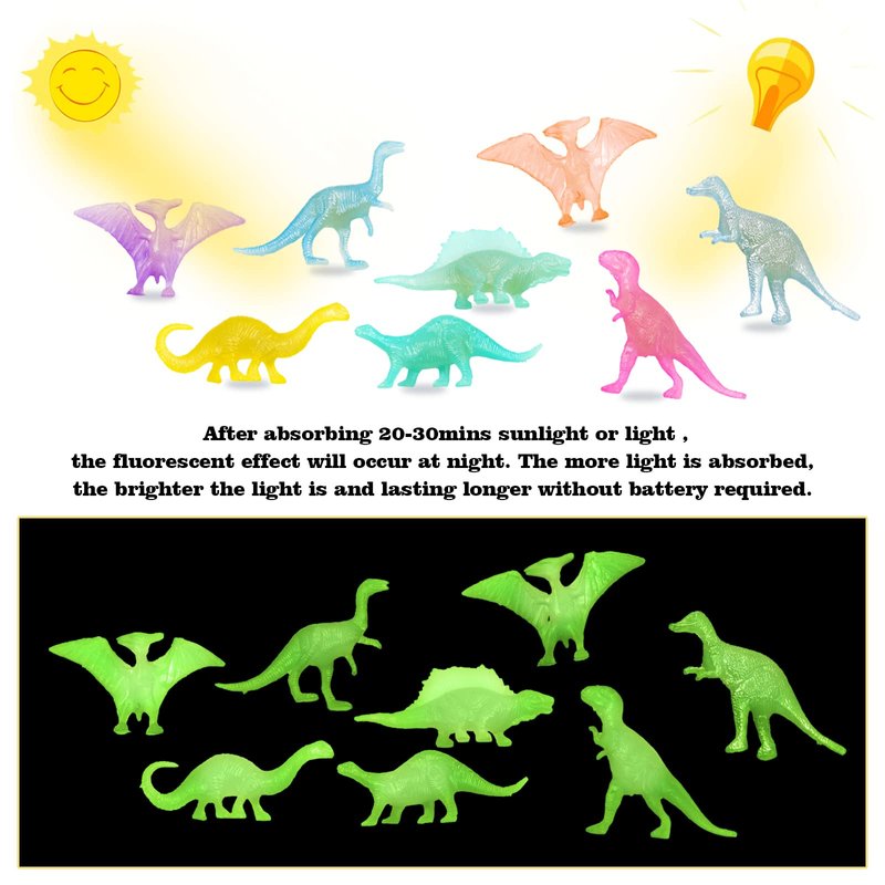 - ✔️【WIDE APPLICATIONS】These glow dinosaur toys are perfect for dinosaur theme party decorations, dinosaur party favors, goody bag stuffers for kids, glow in the dark decorations, Christmas gift or party favors. They are also the ideal gifts for birthdays, classroom activities, gift exchanges, and school classroom prizes.
