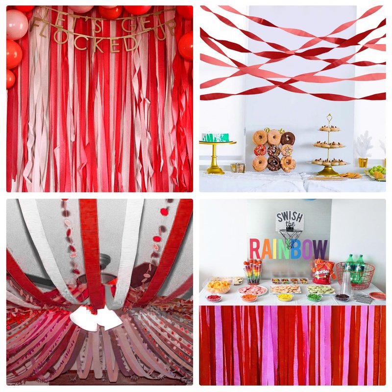 - Red Streamers: Bright and vibrant colors are suitable for party decorations and DIY crafts. Decorate ceilings, background walls, dining tables, photo backdrops, make tassel garlands, confetti, balloon tails, piñatas and more
