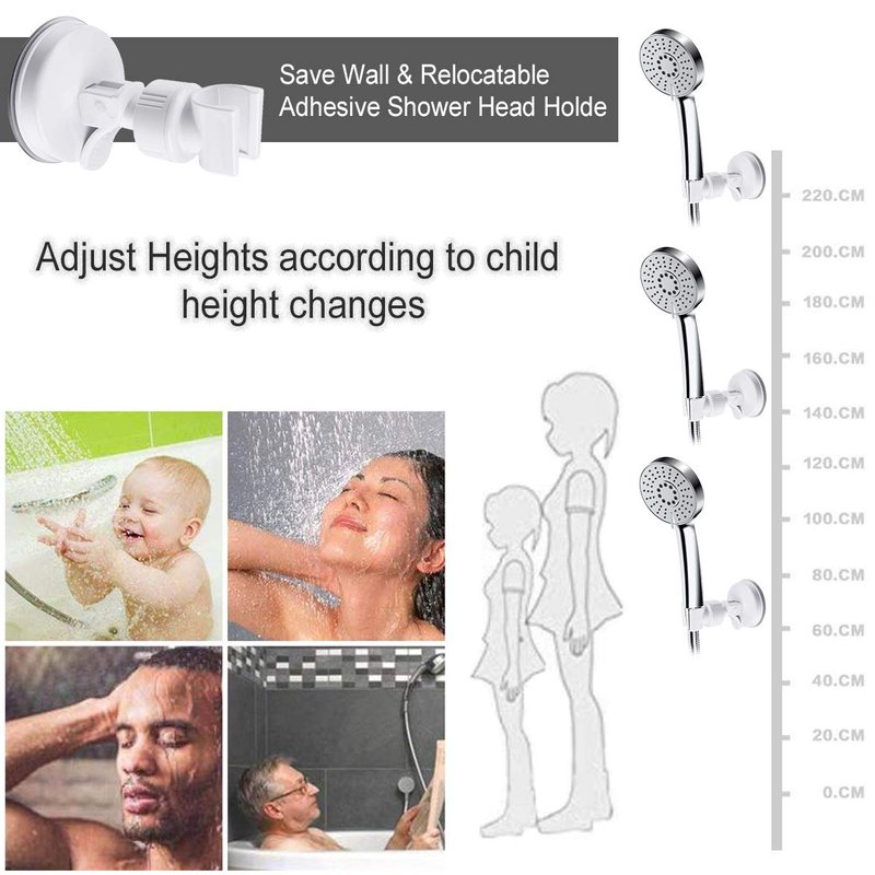 - Super Easy to install: Please make sure that the size is suitable before purchasing! Fits shower heads with a size of 0.87inch/2.2cm. no tools need, it is self-priming installation without drilling, you only need to put the suction cup to grip the contact surface, such as glazed tile wall, mirror, glass, etc..