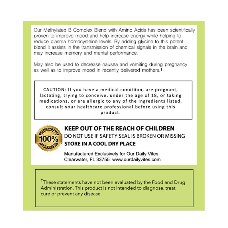 Our Daily Vites L-Methylfolate B Complex Cofactors & Essential Amino Acids (7.5mg) - Active Folate, Methylated B12 Methylcobalamin, B6 and Glycine - 60 Count