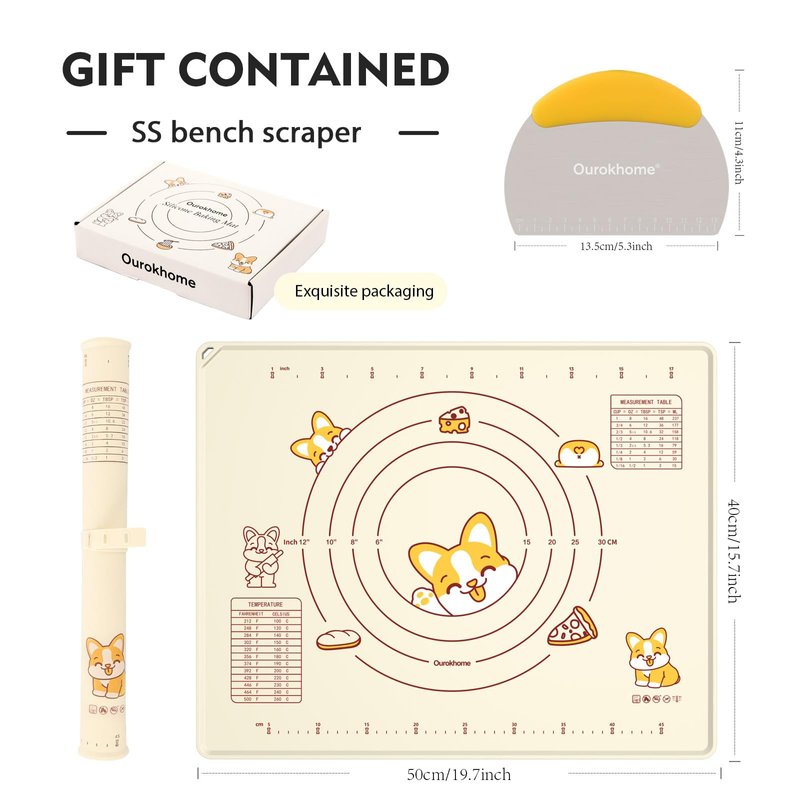 - ๐ฒ๐๐๐๐๐๐ ๐ฌ๐๐๐๐๐๐๐๐๐ ๐บ๐๐๐๐๐๐๐ ๐น๐๐๐๐๐๐ ๐ด๐๐: The dough mat is made from high-quality food grade soft platinum silicone, which is elastic without deformation. The beautiful corgi patterns add fun to the boring kneading. The raised edge (4 mm) prevents water and flour from spilling onto your countertop during kneading. The thickness of the kneading pad is 1mm, which is more durable to withstand the test of time.